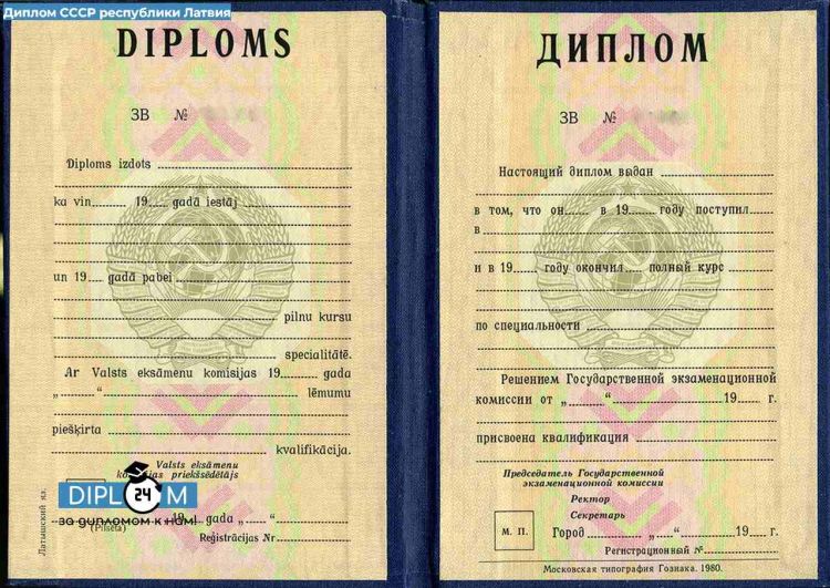- Диплом СССР о высшем образовании Республики Латвия